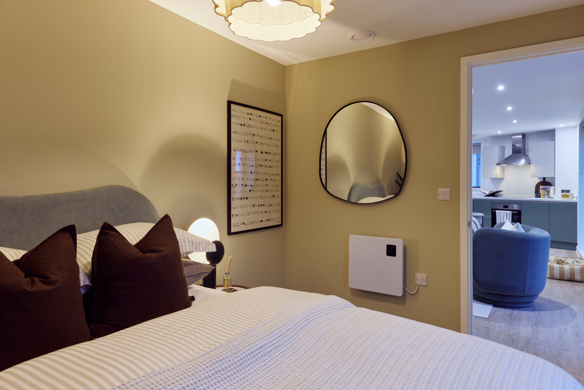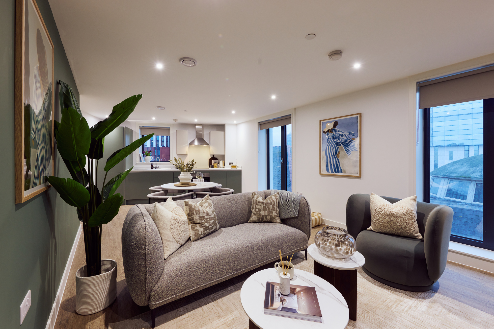 At Angorfa, our two-bedroom flats in Cardiff blend contemporary style with the flexibility to suit the way you live. Floor-to-ceiling windows draw in generous natural light, opening each home with a bright, welcoming feel. Start your day in serene bedrooms featuring king or double beds, with built‑in wardrobes in the primary bedroom and freestanding storage in the second. The fully equipped kitchens make cooking enjoyable, whether it’s for everyday meals or evenings shared with the people you love. They’re pet‑friendly too, so your furry companions are always welcome.